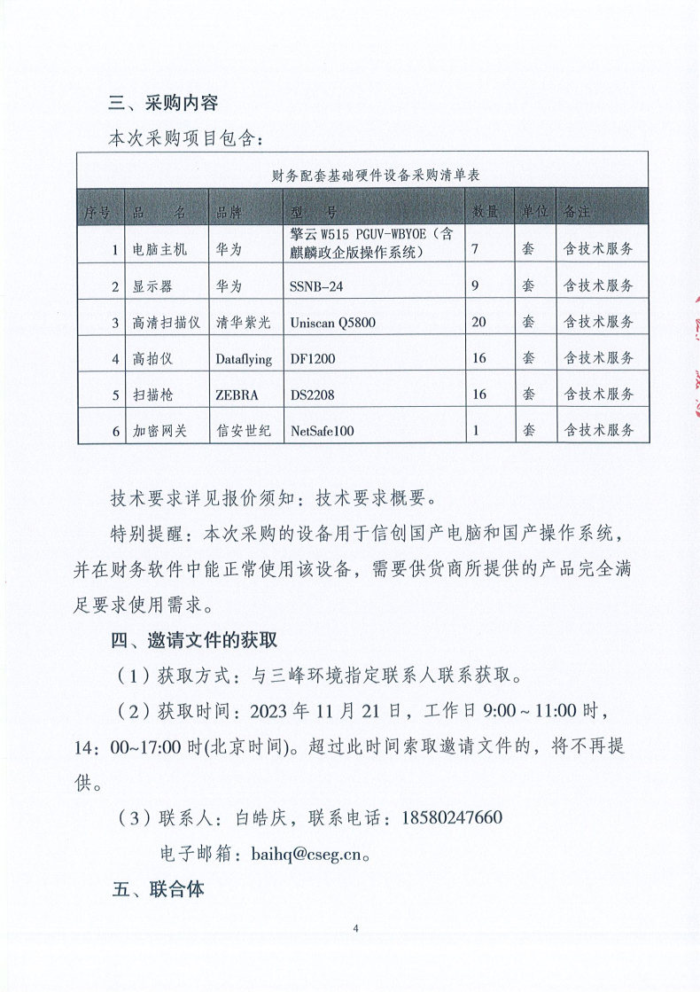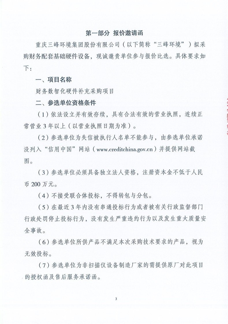 財務配套基礎硬件項目報價邀請文件